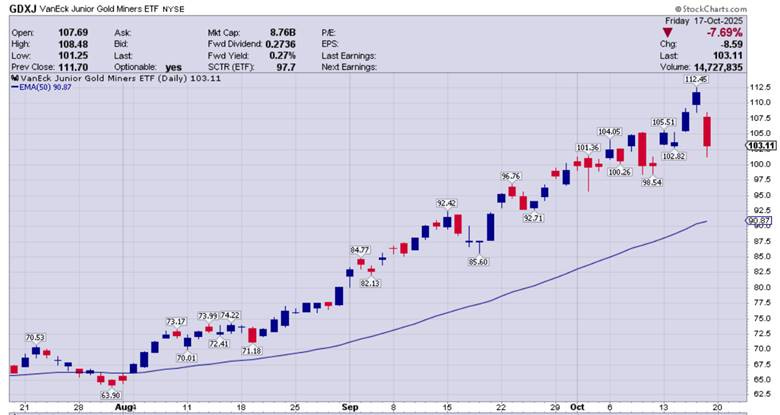 In the first half of this last week gold was up at all-time highs in the upper $4,300s, silver was breaking up to new all-time highs at $53-$54, rare earth stocks were all the rage, and uranium stocks were surging again. It was a melt-up move in these markets, but then that was followed by a corrective move to end the week.