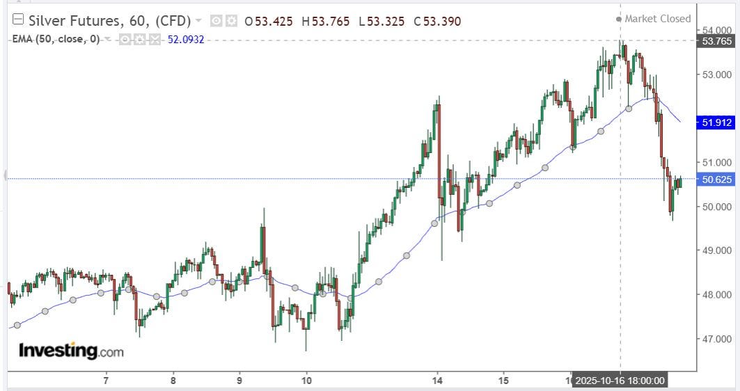 Silver tagged an intraday high of $53.765 on Thursday October 16th, but then reversed down hard on the following trading session.