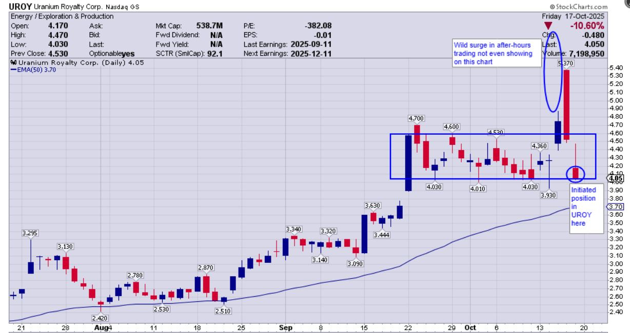 On Oct 17th I took some of the dry powder raised on the sidelines and deployed it into a new starter position in Uranium Royalty Corp (Nasdaq: UROY) at $4.10.