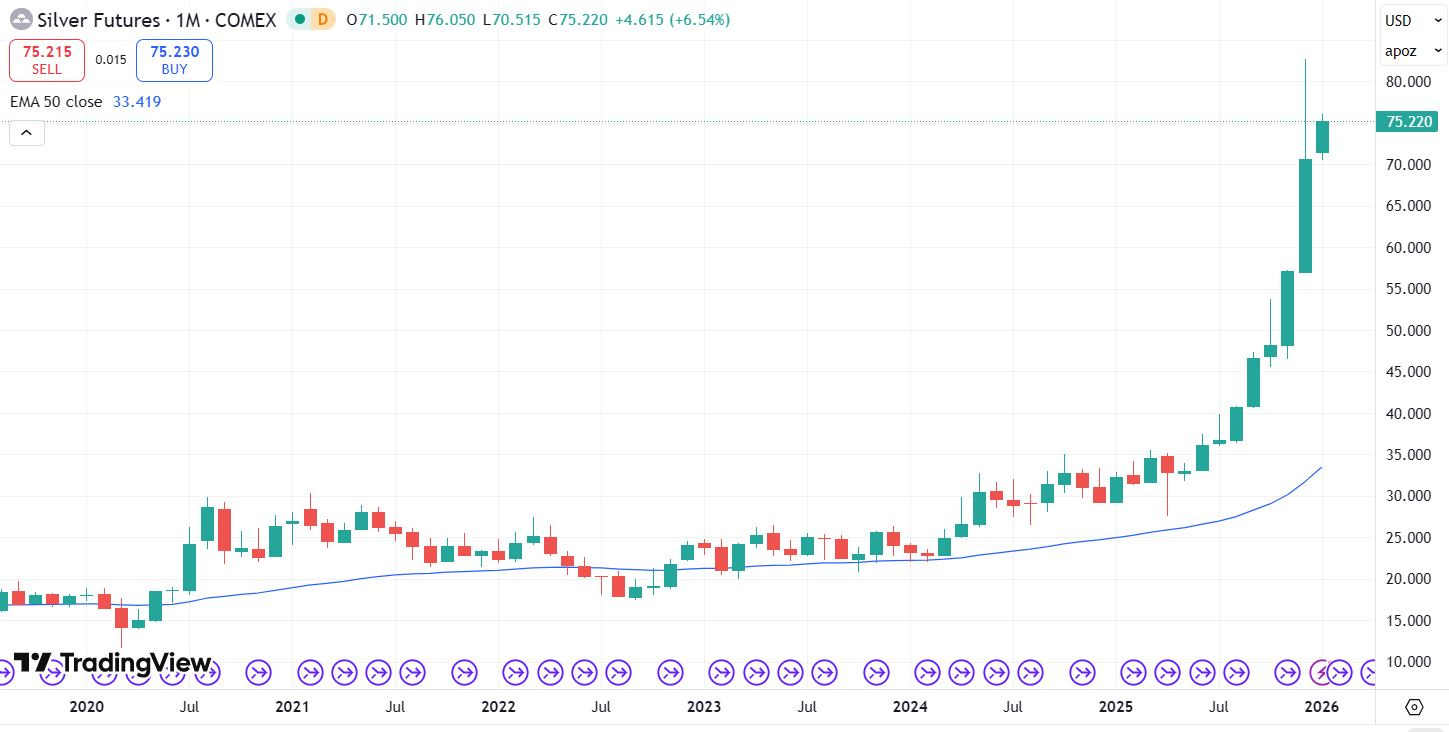 Silver Futures – Monthly chart: